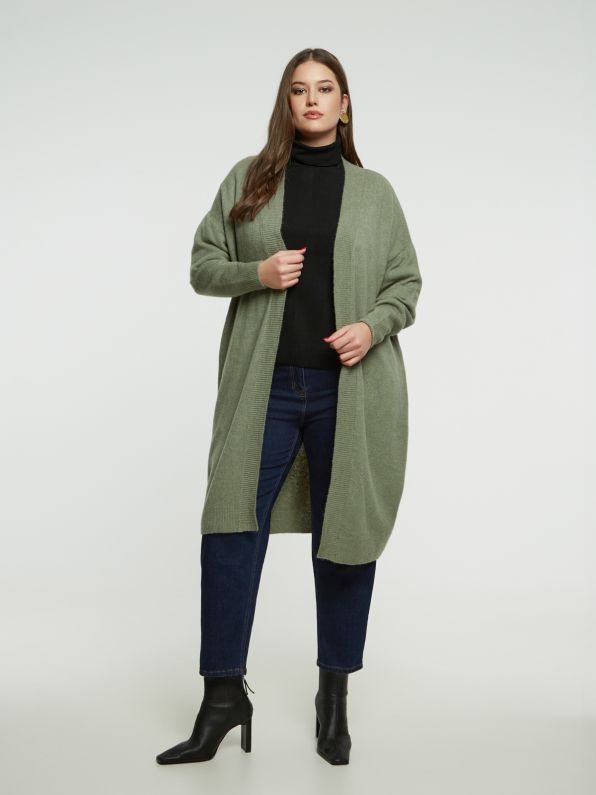 Deze lange cardigan van MAT Fashion is gemaakt in dezelfde zachte, warme stof als de truien – met 10% wol, dus perfect voor het tussenseizoen of koude dagen.