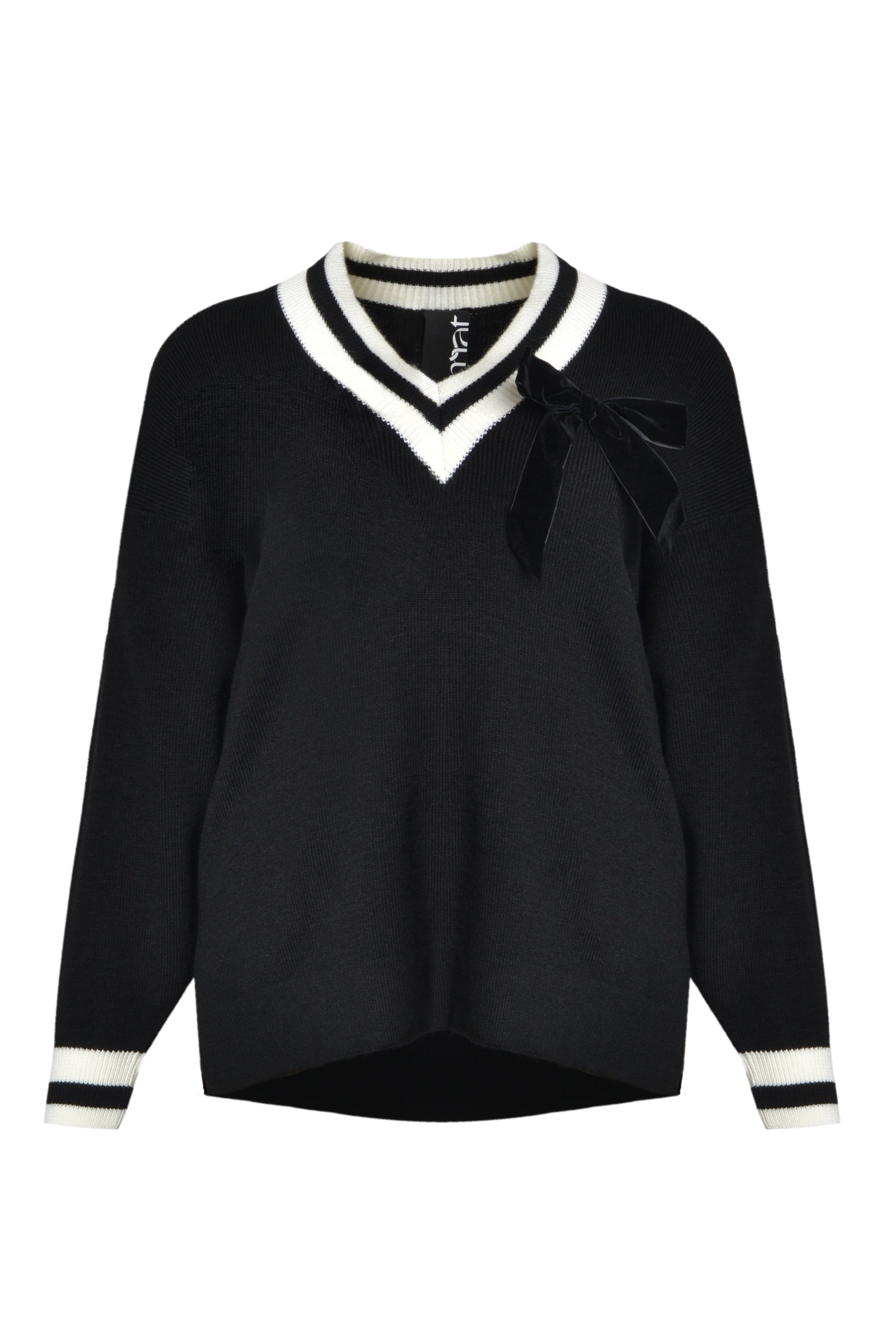 Deze langere trui van MAT Fashion heeft die typische preppy varsity look dankzij de contrasterende strepen aan de V-hals en mouwen. Het model valt los en comfortabel, ideaal om zowel op een jeans als op een rok te dragen.