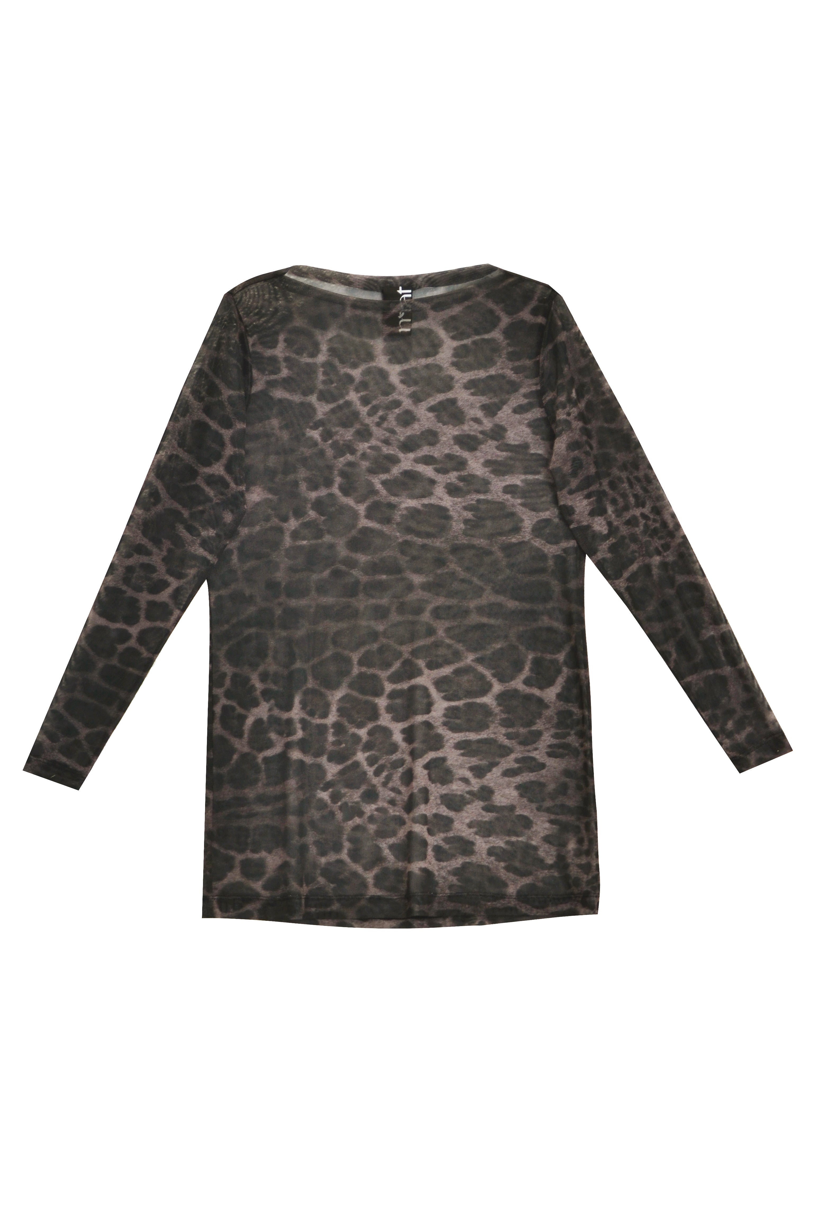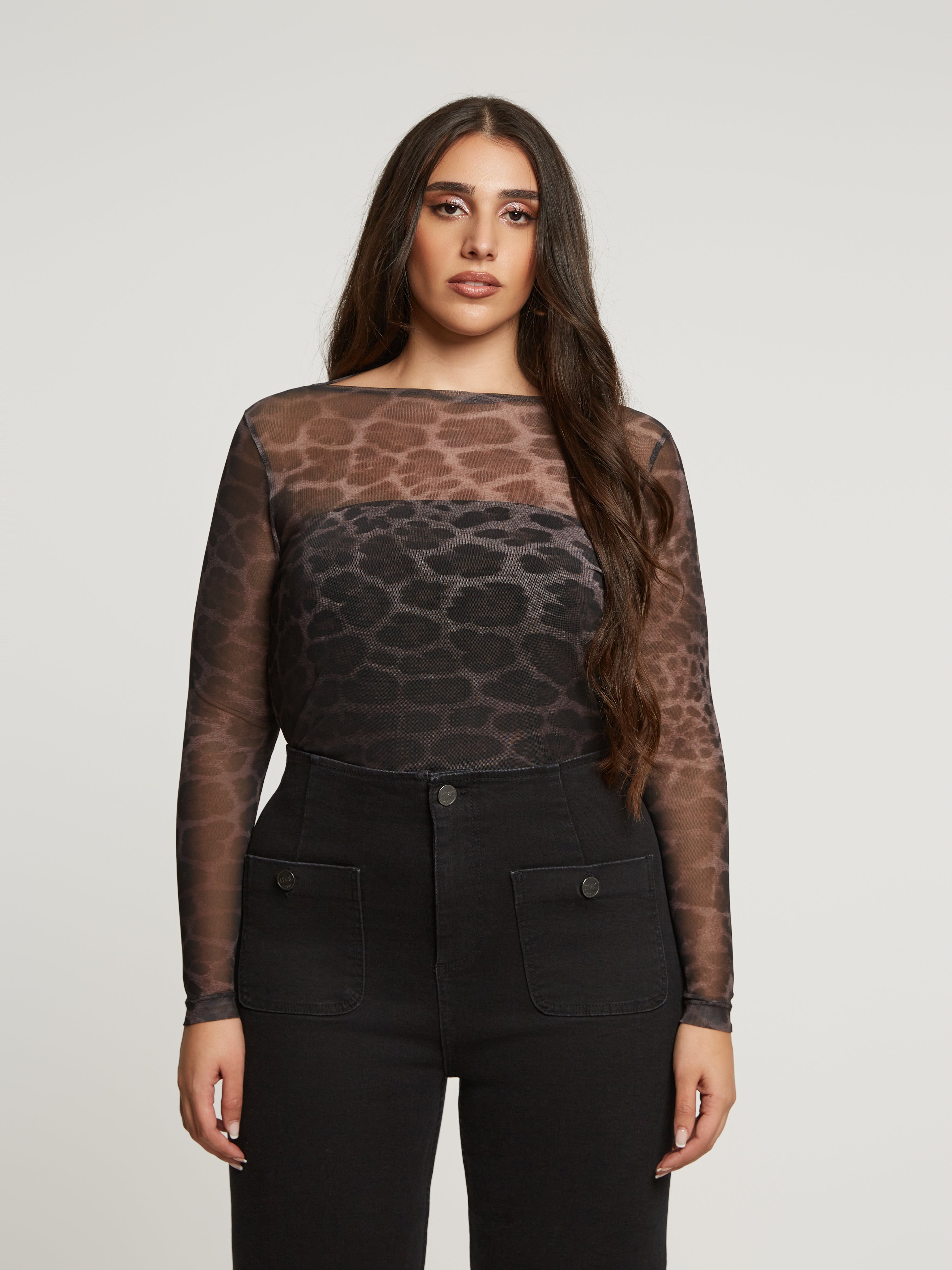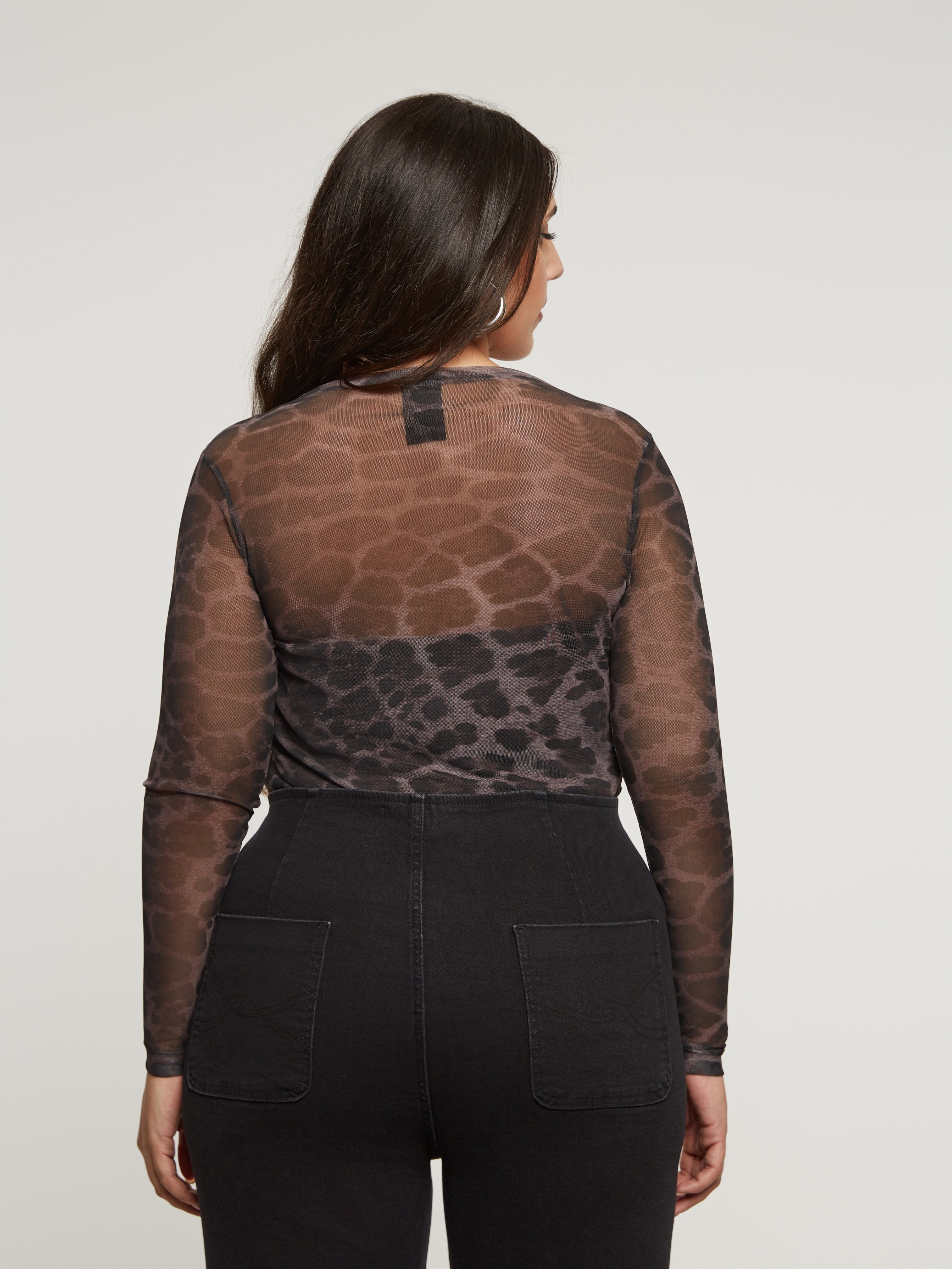 Deze animal-print mesh top brengt een gedurfde, vrouwelijke look met een moderne twist. De lichte, semi-transparante stof maakt hem ideaal om te layeren of solo te dragen voor een statement dat zowel gewaagd als verfijnd blijft.