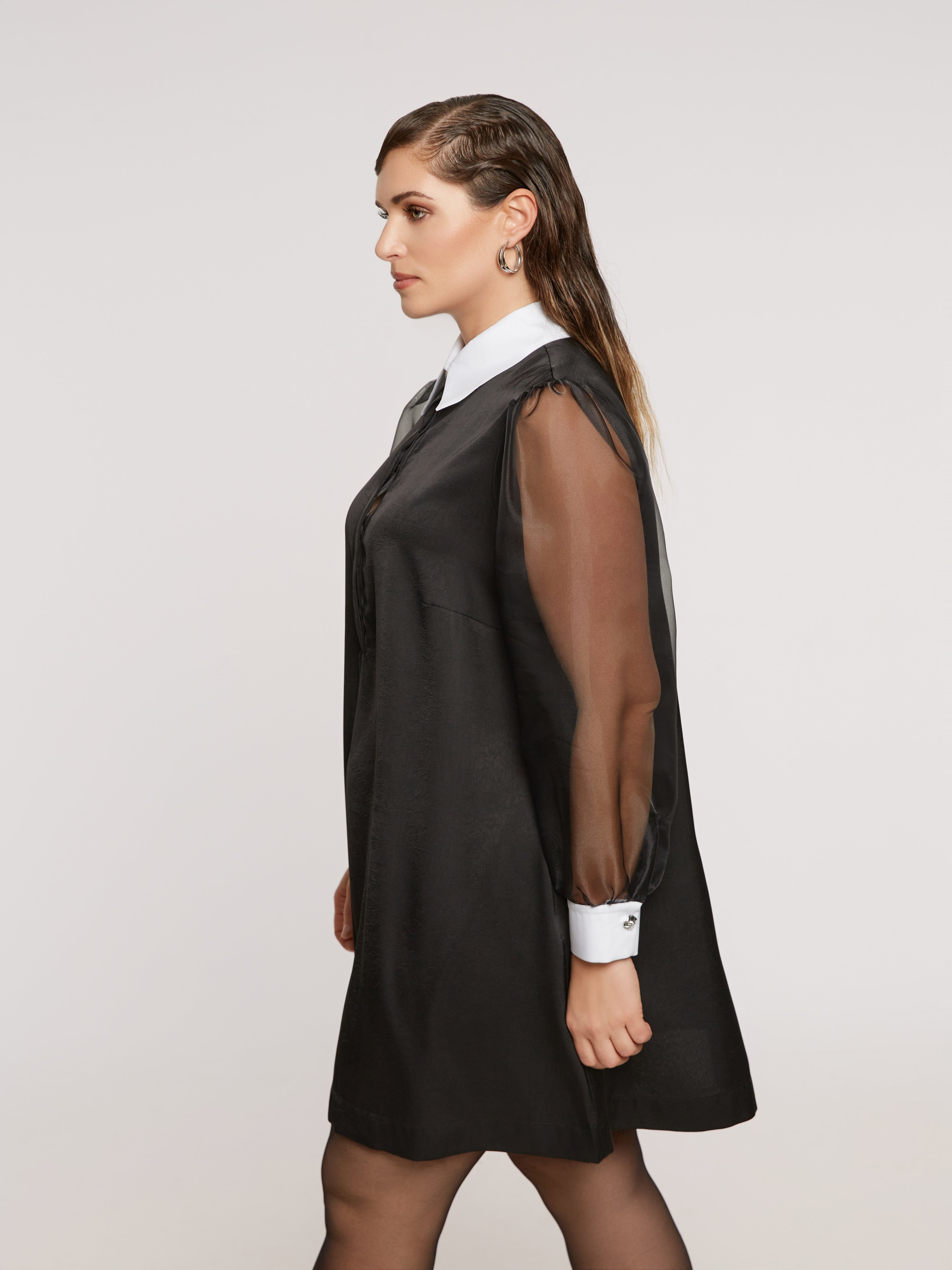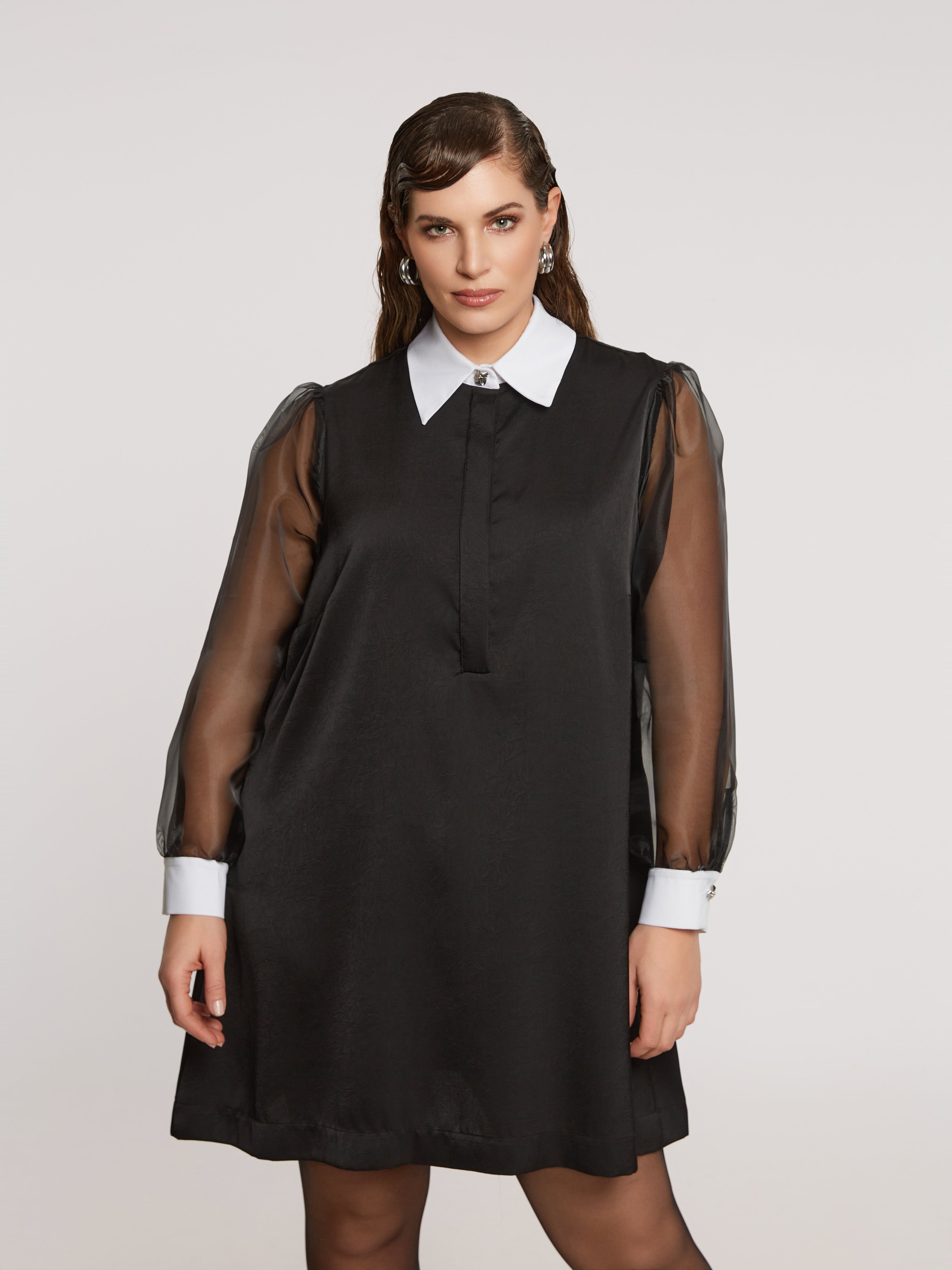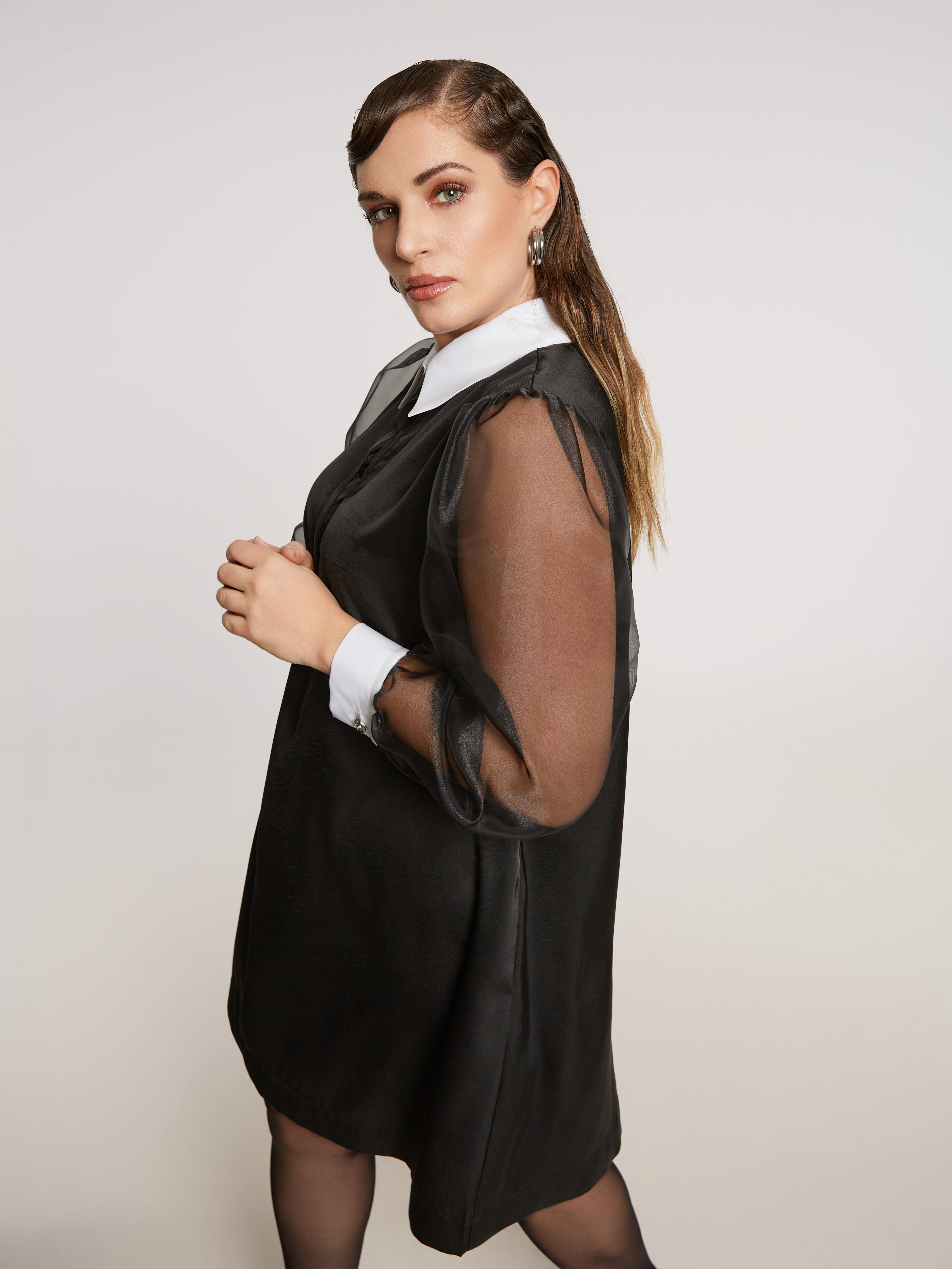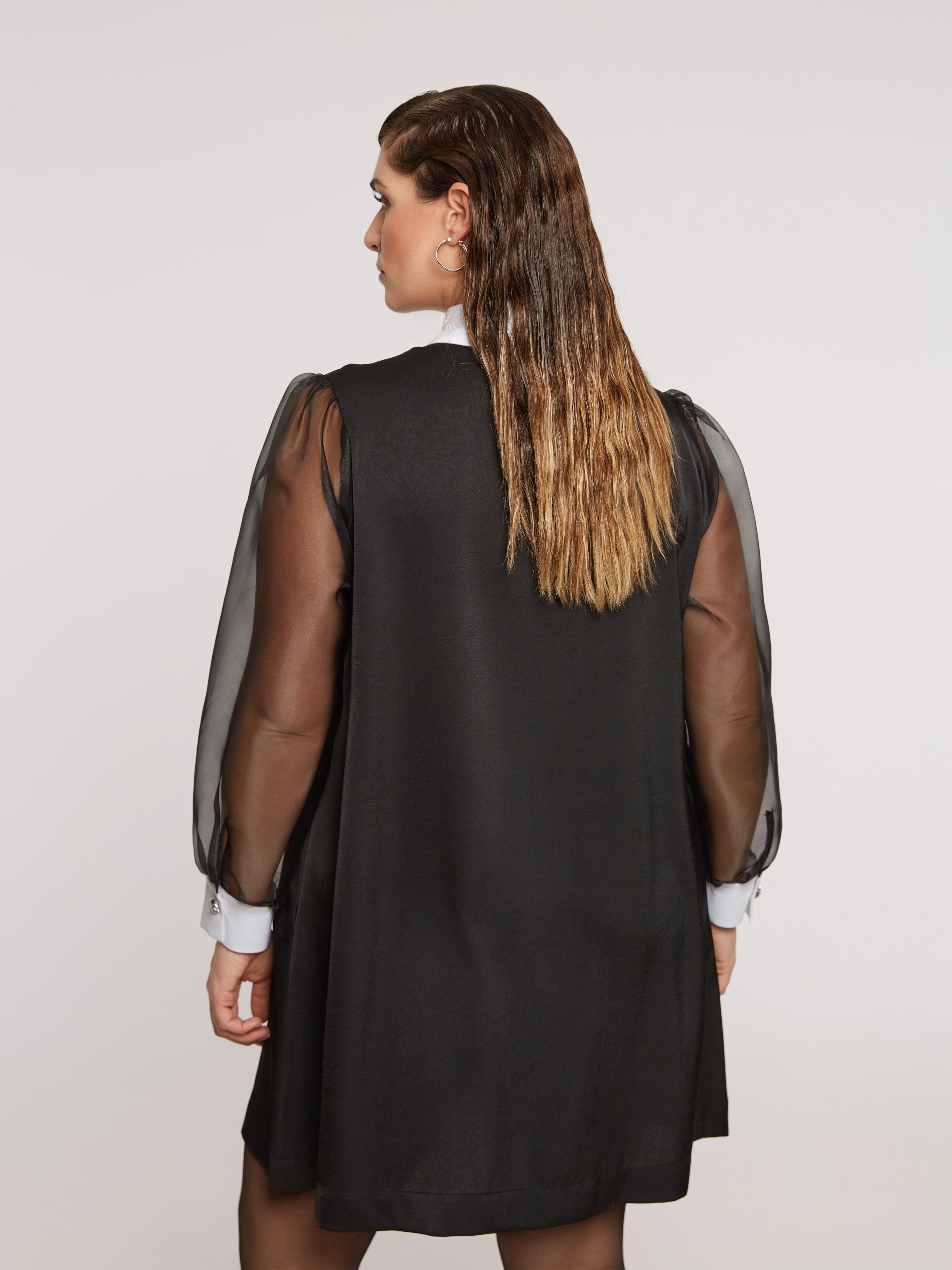 De sheer mouwen zijn dé eye-catcher. Licht, speels transparant en perfect om tijdens de feestdagen dat tikkeltje extra presence te geven.