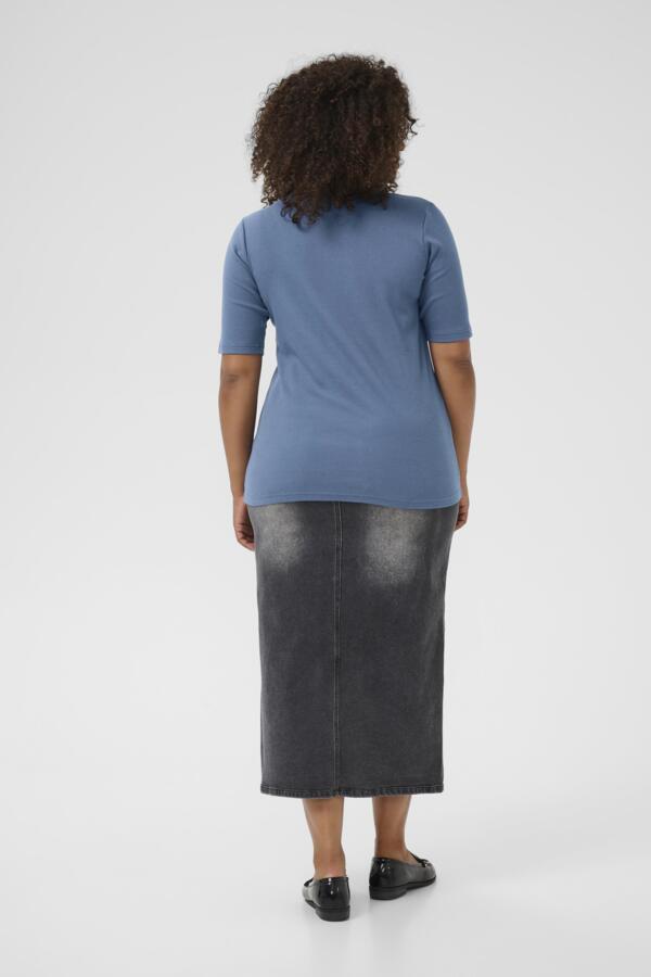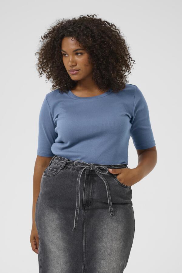 Dit plus size T-shirt heeft een rechte, comfortabele pasvorm met een ronde hals en halflange mouwen, ideaal om elke dag te dragen. Dankzij de mix van katoen en elastaan voelt het zacht aan, zit het stretchy en blijft het mooi in model. Het aansluitende design maakt het de perfecte basic die je eindeloos kan combineren – van casual met jeans tot stijlvol onder een blazer of vest.
