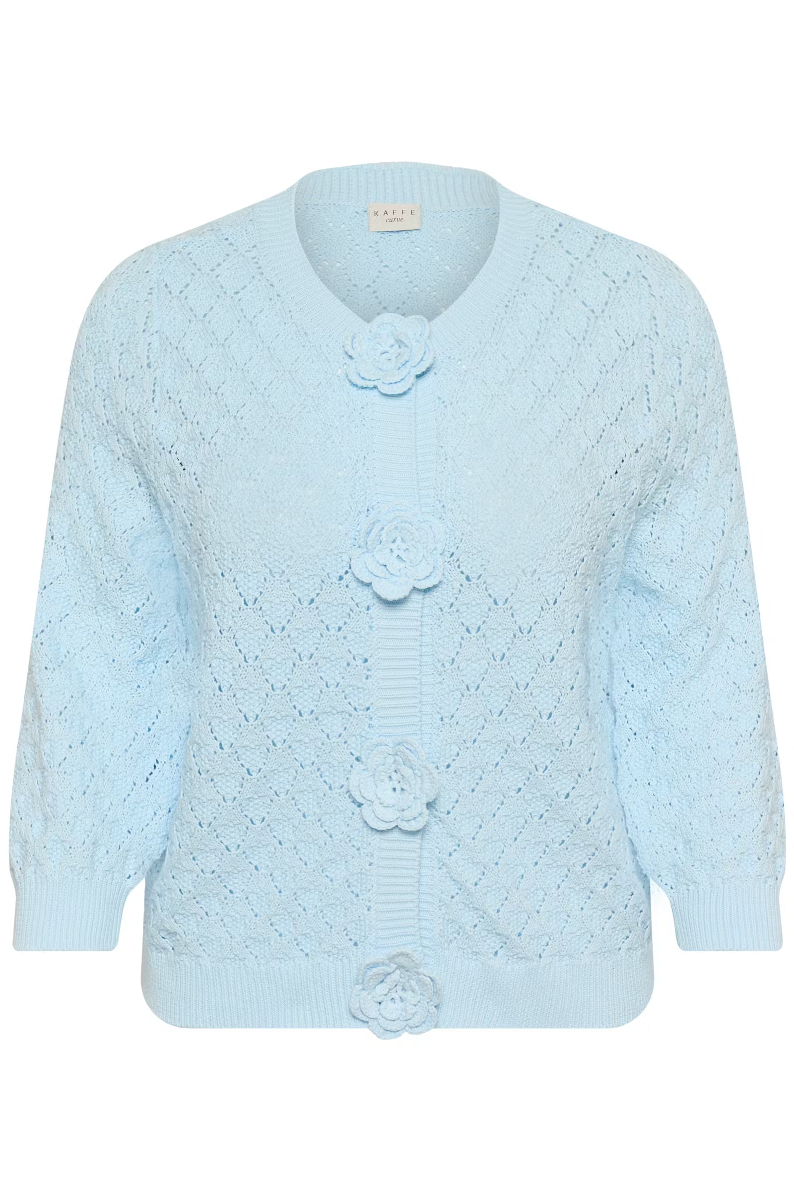 Dit gehaakte cardigan van Kaffe Curve is gemaakt uit 100% katoen en voelt het heerlijk zacht en luchtig aan, ideaal om te dragen als extra laagje tijdens mildere dagen.