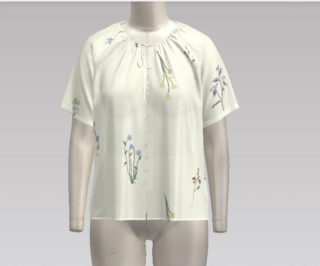 De ronde hals is afgewerkt met een fijn lintje dat je los kan dragen voor een meer nonchalante look. De losse mouwtjes en de flowy pasvorm zorgen voor extra comfort en beweging. Wat dit stuk echt bijzonder maakt, zijn de subtiele opgestikte bloemen die verspreid over de blouse zitten. Fijn en verfijnd, maar net genoeg om die extra touch te geven.